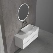 Above counter Basins are available in the following sizes. 26" x 15.74" x 7" or 20.78" X 12.6" X 5.7". These Basins are available in Alabaster, Ebony, Dove and Flower.