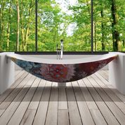 Hammock Bath, currently offers Three Different Tub Styles, First the, The Oasis, which suspends the Tub between 2 wall supports. The Oasis comes in two different sizes, 78.75" X 39.37" or 70.86" X 34.43".