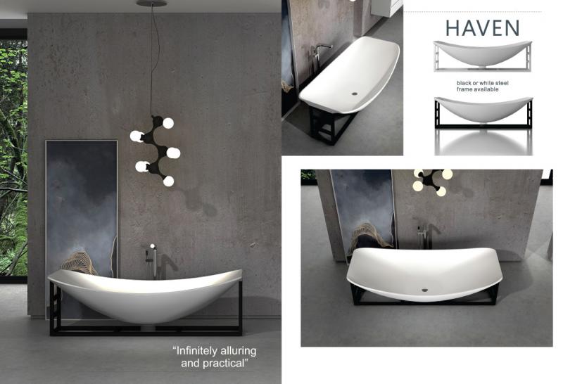 Second, would be The Haven, Steel Support Frame Supports the Tub, this Support Frame is available in two different finishes, Black or White. Same two sizes as above.