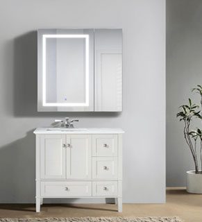 Krugg Reflections is a Quality LED Mirror Company that offers a wide range of LED Mirrors, from Rectangular with sizes from 18x30 all the way to 96x36. Oval, Round, Square and Octagon shapes. Krugg offers two differ typles of Medicine Cabinets, mirrored door opening either Right or Left and a Sliding Door. The Svange Medicine Cabinet is the most popular with the doors opening either Right or Left, can be surfaced mounted or Recessed into the wall at no addition cost! each of these cabinets offer inside lighting once the door is opened. Inside is 110V Electrcal inputs , along with two USB ports. A Lighted 3X Magnification Mirror inside cabinet door, all this at no additional cost.